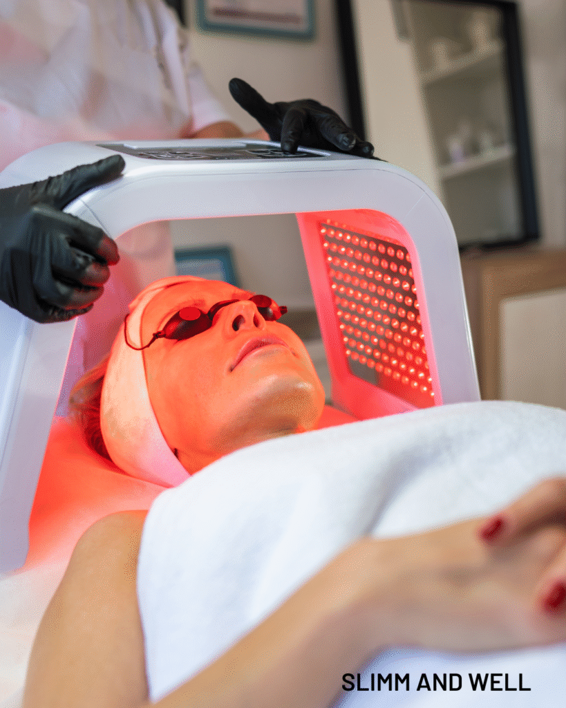 At Slimm & Well, we select the appropriate light (or a combination) for your skin goals—calming breakouts, brightening tone, or supporting post-treatment recovery. A short series of sessions usually delivers the best improvement, with quick, comfortable appointments and no recovery time.
